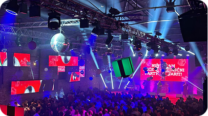Više od dvadeset pet godina osmišljavanja, cjelovite realizacije i tehničke produkcije različitih formata korporativnih događanja, konferencija, festivala, koncerata i vjenčanja.